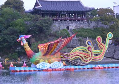 The many Wonderful floats and lights during the South Korean, Jinju Lantern Festival.